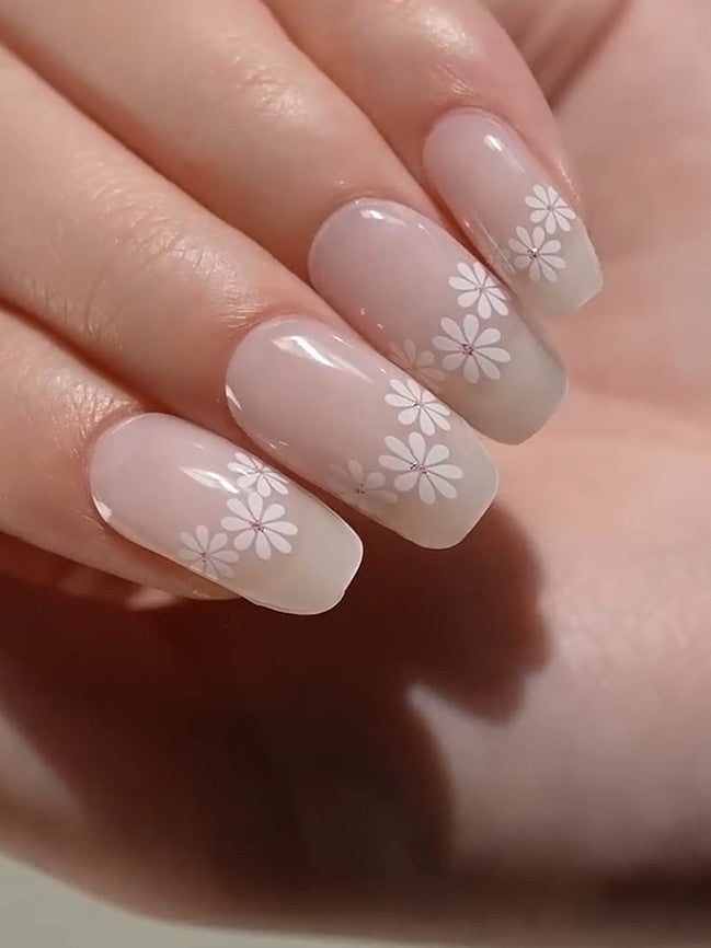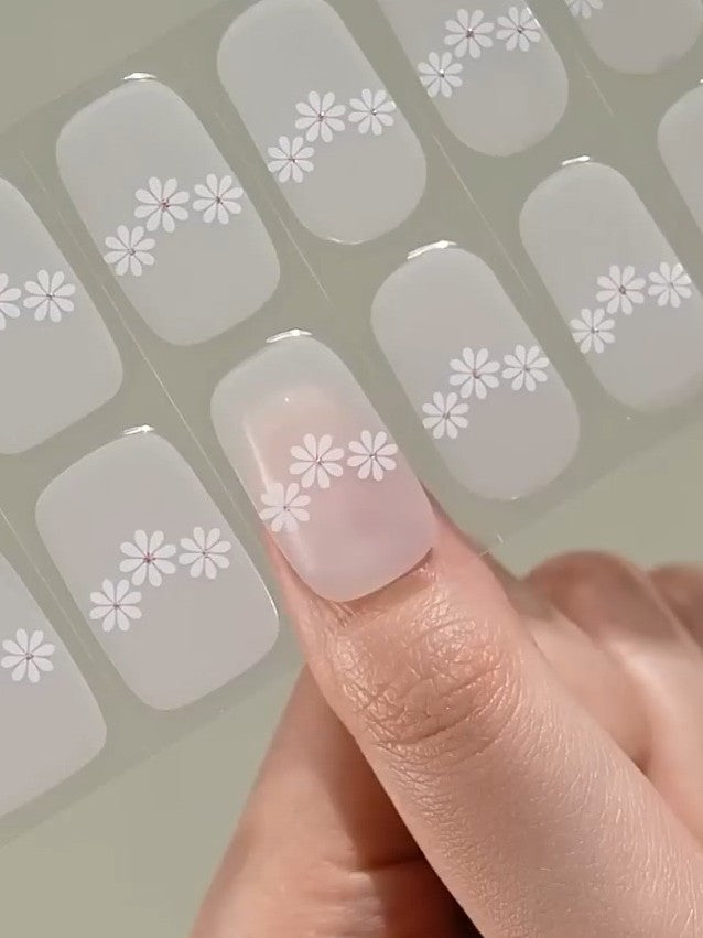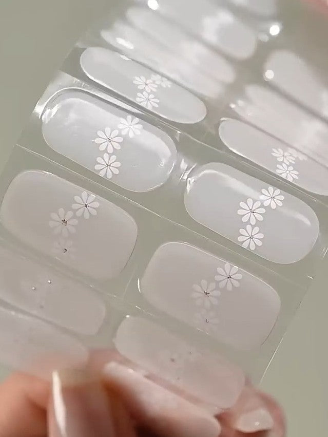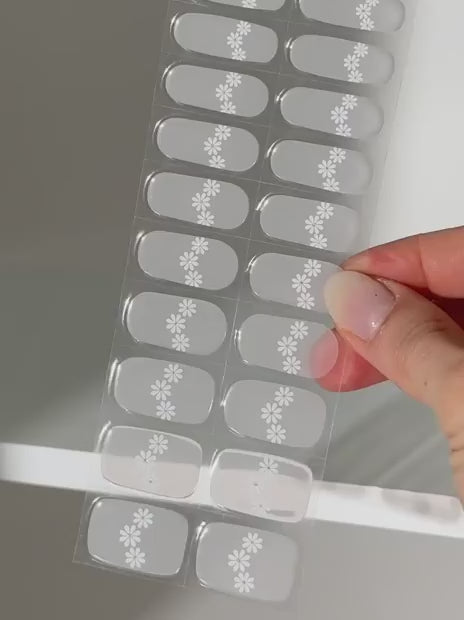 Jemný a elegantný dizajn s polotransparentným podkladom s motívom bielych kvetiniek.