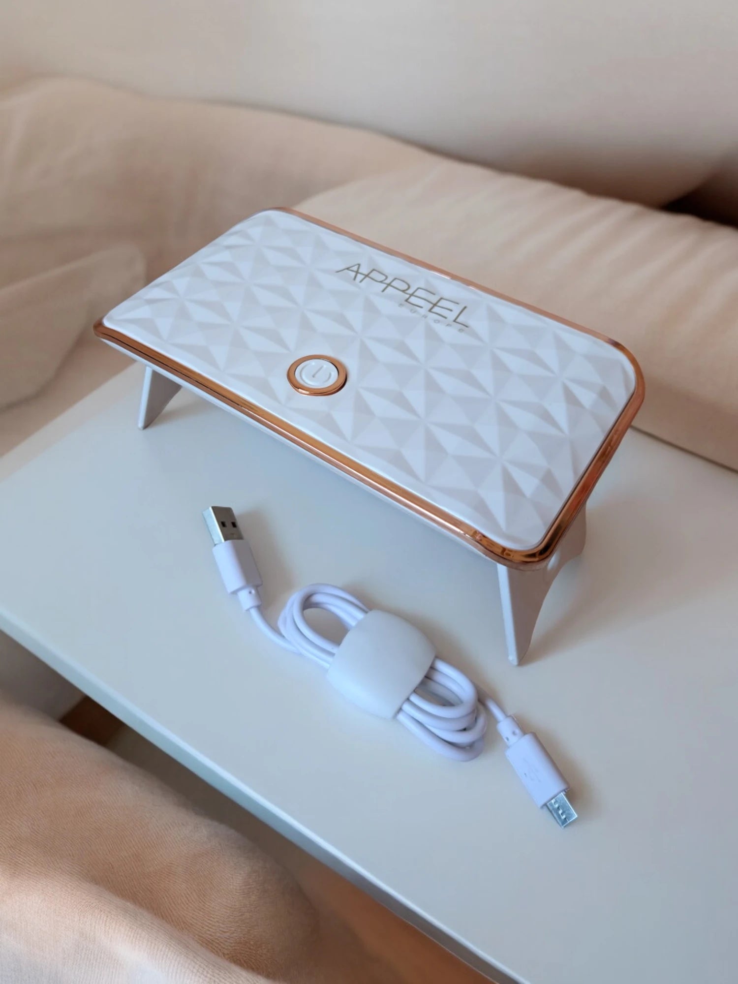 Táto UV LED lampa s exkluzívnym dizajnom je ideálna pre profesionálne aj domáce použitie pri úprave nechtov. Lampa využíva pokročilú technológiu UV a LED svetla na rýchle a efektívne vytvrdzovanie samolepiacich gélových prúžkov.. Vyznačuje sa elegantným dizajnom a kompaktnými rozmermi, čo umožňuje jednoduché prenášanie a uskladnenie.