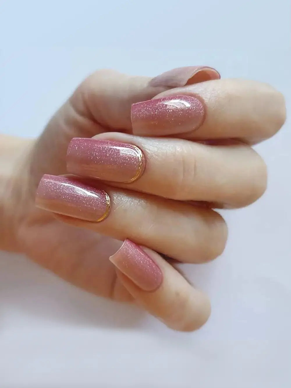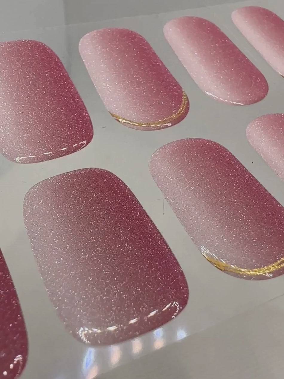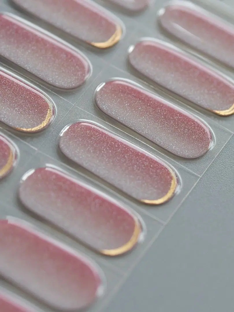 Dizajn Zlaté šampanské je stelesnením elegancie a jemného luxusu. Tento decentný, jemne trblietavý, no pritom výrazný vzhľad dodá vašim nechtom sofistikovaný nádych, ktorý si zamilujete. Dizajn je v netradičnom ombré štýle zo strany na stranu.